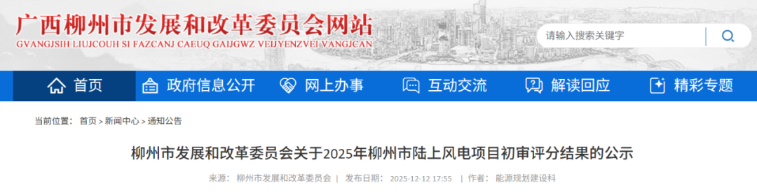 北极星风力发电网获悉,近日,广西柳州市发展和改革委员会发布《关于2025年柳州市陆上风电项目初审评分结果的公示》。根据公示,2025年柳州市陆上风电项目竞争性配置结果包括3个风电项目,装机容量共计30万千瓦。...
