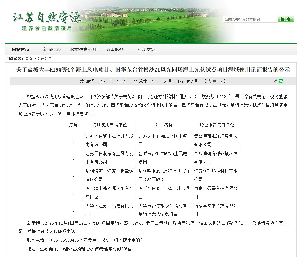 近日,江苏省自然资源厅发布《关于盐城大丰H19#等4个海上风电项目、国华东台竹根沙Z1风光同场海上光伏试点项目海域使用论证报告的公示》。相关阅读:1422MW!江苏龙源、华润、三峡海上风电项目公示盐城大丰H19#海上风电项目根据公示,盐城大...