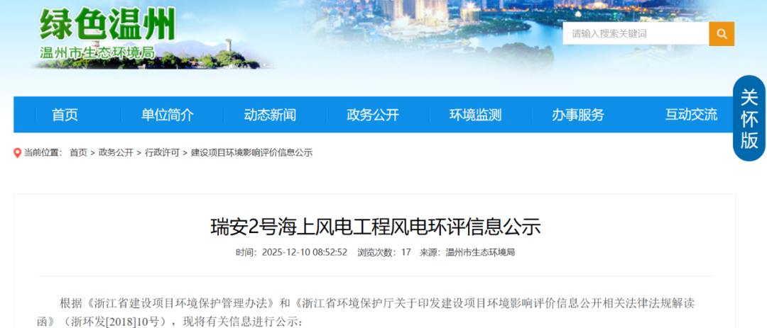 北极星风力发电网获悉,12月10日,温州市生态环境局发布《瑞安2号海上风电工程风电环评信息公示》。根据公示,瑞安2号海上风电项目场区中心离岸距离约71km,水深36~41m,。项目装机600MW,包括30台单机容量为20MW的风力发电机组,...