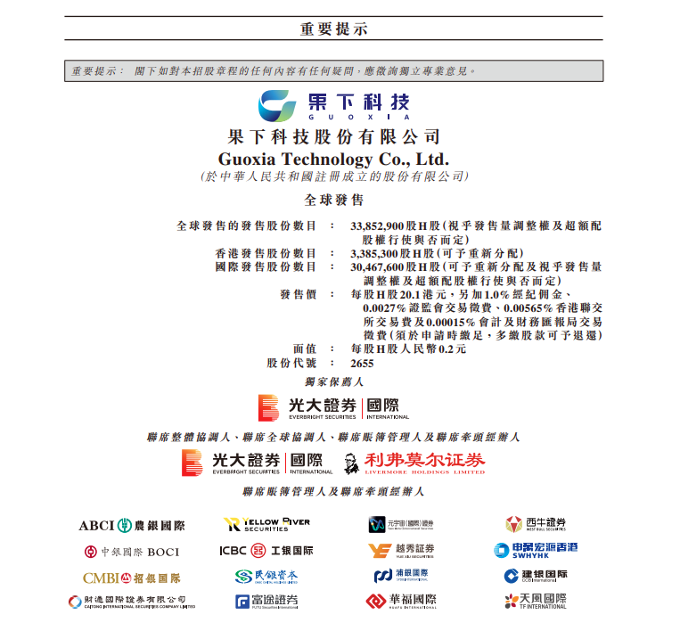 12月8日,果下科技在港交所发布招股章程,正式启动全球发售,计划发行33,852,900股H股,每股发售价定为20.1港元,预计将于12月16日在港交所主板挂牌上市。本次发行由光大证券国际担任独家保荐人,募资净额预计约为6.06亿港元,其中...