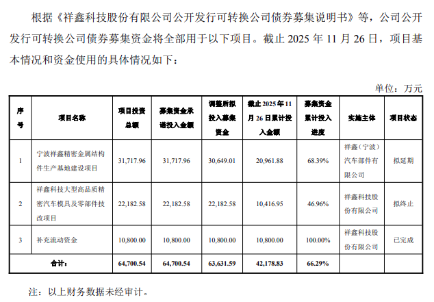 北极星储能网获悉,12月3日,祥鑫科技发布公告,宣布将终止2020年可转债募投项目"大型高品质精密汽车模具及零部件技改项目",并将剩余募集资金1.18亿元调整至"东莞储能、光伏逆变器及动力电池箱体生产基地建设项目"。同日,公司宣布将使用该项...