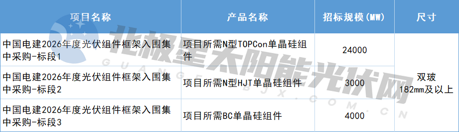 从中国电建阳光采购网官网获悉,12月3日,中国电建2026年度光伏组件框架入围集中采购项目公开招标公告发布,本次招标分为3个包件,采购TOPCon、HJT、BC组件,共计31GW,详情如下:具体来看:一、招标条件受中国电力建设集团(股份)有...