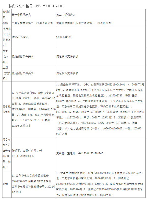 12月3日,国华投资国华(如东)新能源有限公司国华如东光氢储一体化项目6万千瓦12万千瓦时储能电站及配套设施PC总承包工程公开招标项目中标候选人公示。第一中标候选人为中国安能集团第二工程局有限公司,投标报价11334.358459万元,折合...