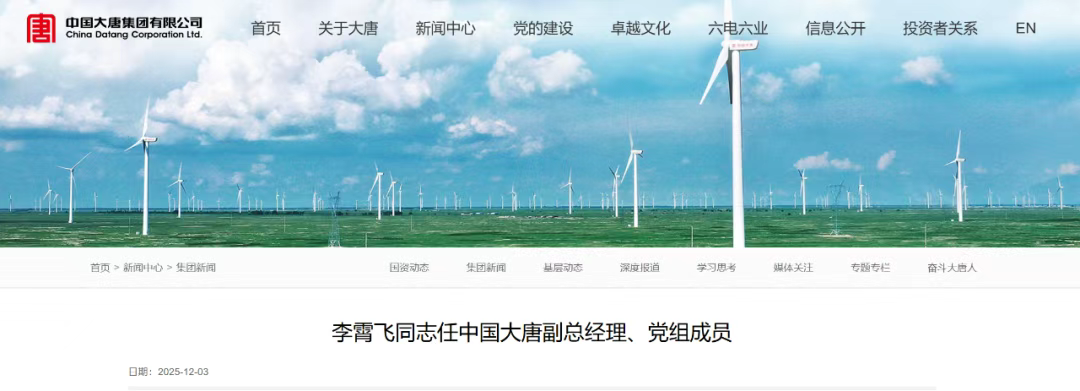 2025年12月3日上午,中国大唐集团有限公司召开领导班子扩大会议,通报了中共中央组织部有关决定:李霄飞任中国大唐集团有限公司副总经理、党组成员,免去曲波同志中国大唐集团有限公司副总经理、党组成员职务,并退休。相关职务任免按有关法律规定办理...