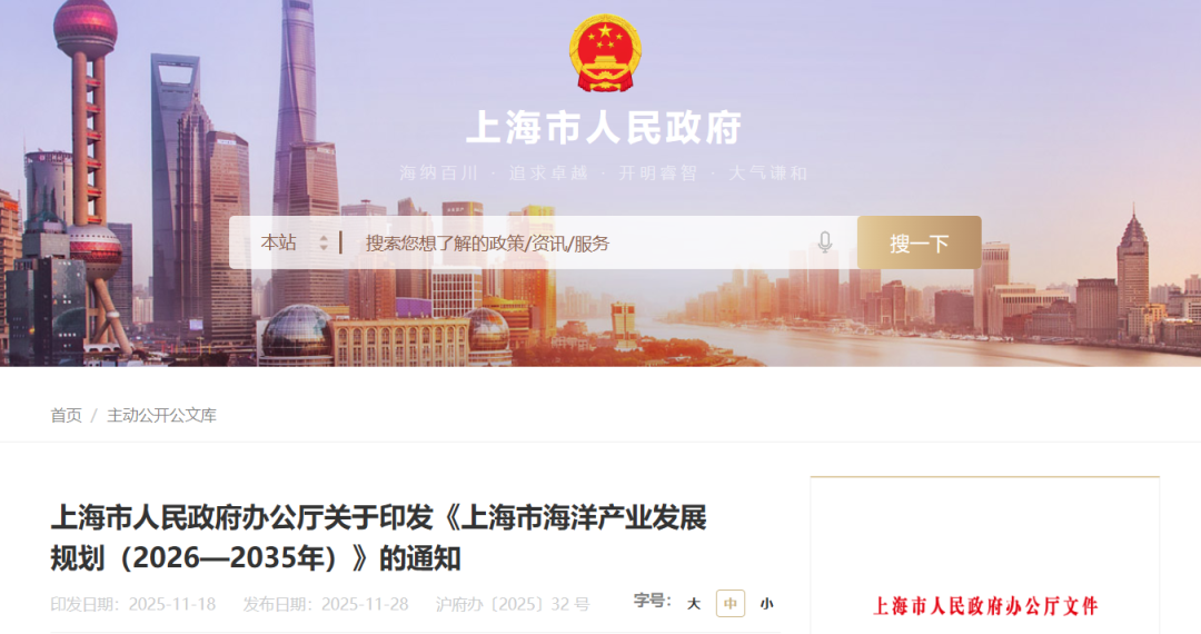 北极星风力发电网获悉,11月28日,上海市人民政府办公厅发布关于印发《上海市海洋产业发展规划(2026—2035年)》的通知。文件指出,到2030年,全市主要海洋产业稳步增长,海洋科技自主创新能力显著增强,海洋新质生产力加快培育,“3+5+...