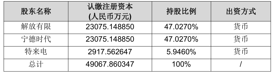 北极星储能网获悉,11月27日,一汽解放披露,基于公司整体战略和未来经营发展需要,拟通过全资子公司一汽解放汽车有限公司对其合营企业解放时代新能源科技有限公司现金增资1.91亿元人民币,解放时代现有股东宁德时代新能源科技股份有限公司及本次新引...