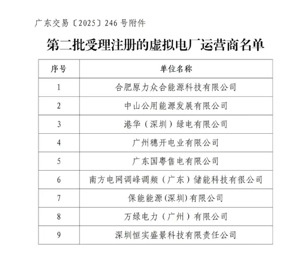 北极星电力市场网获悉,9月23日,广东电力交易中心发布2025年8月虚拟电厂运营商注册公示,包括9家虚拟电厂。2025年8月,广东电力交易中心和广东电网电力负管中心受理虚拟电厂运营商的注册申请,对其提交的市场准入材料进行了完整性审验,并完成...