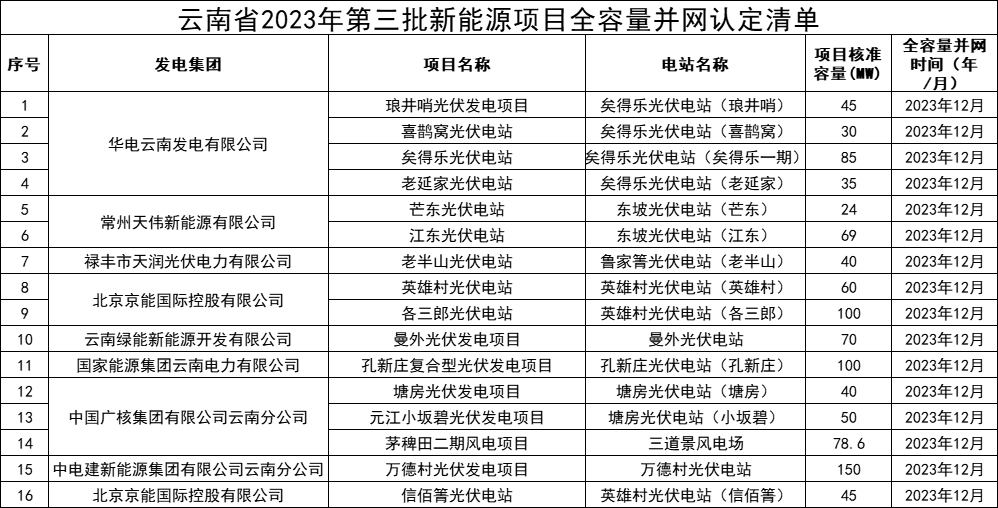 9月3日,云南省能源局发布2023年第三批新能源项目全容量并网时间认定清单,共计16个项目。通知指出,经会同有关单位对2023年6月30日后并网发电的合规新能源项目全容量并网时间进行了认定,请云南电网公司、昆明电力交易中心按照有关电价政策做...