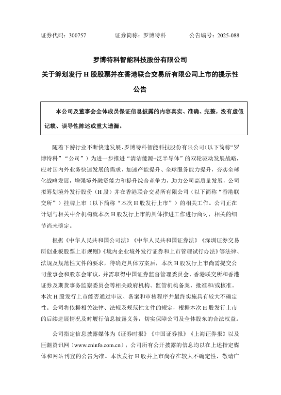 9月7日,罗博特科发布公告称,公司拟筹划境外发行股份(H股)并在香港联合交易所有限公司挂牌上市相关工作。目前,公司正与相关中介机构商讨具体推进工作,细节尚未确定。罗博特科表示,此次筹划旨在进一步推进“清洁能源+泛半导体”双轮驱动发展战略,以...