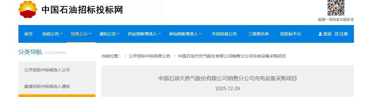 北极星储能网获悉,12月29日,中国石油天然气股份有限公司销售分公司充电设备采购项目公开招标中标结果公示,其中标段一充电设备(普通)排名第一的是绿能慧充数字技术有限公司,标段报价78472.9元;排名第二的是青岛特来电新能源科技有限公司,标...