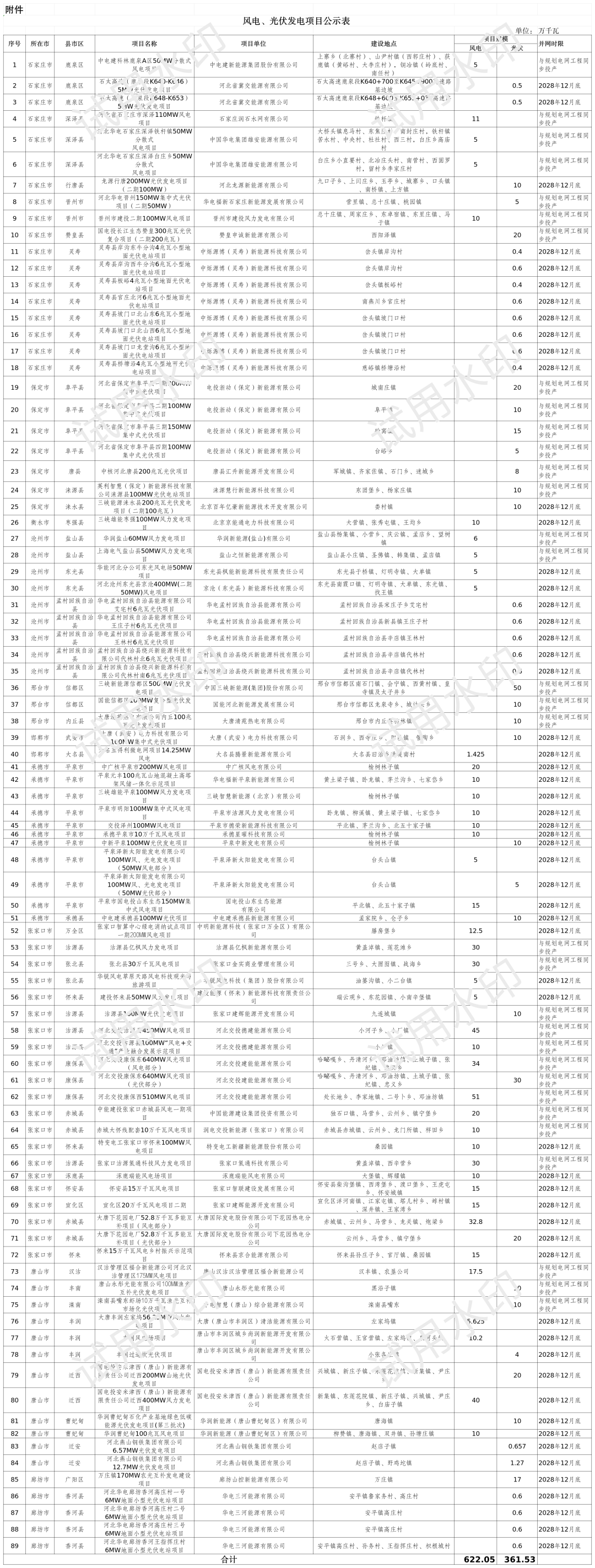 12月26日,河北省2025年风电、光伏发电年度开发建设方案部分第三批拟安排项目情况公示,本次拟公示项目共89个、983.577万千瓦。(名单见后)根据通知,该项目清单是河北电网公司对接入条件确认及第三方咨询单位对基本要件审核,符合用地条件...