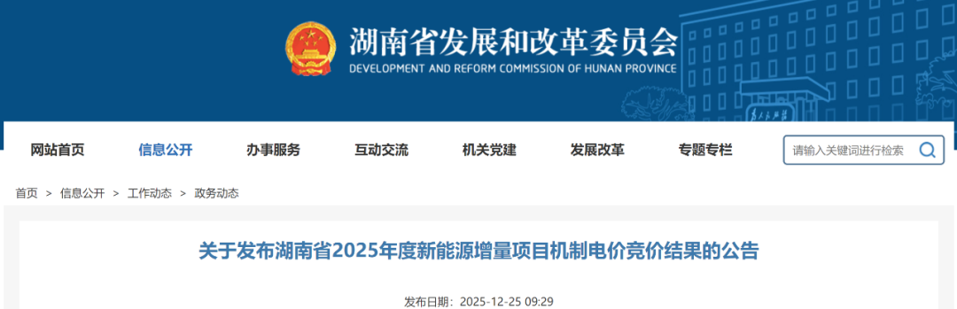 12月24日,湖南省发改委公布2025年度新能源增量项目机制电价竞价结果,根据公告:湖南省2025年度新能源增量项目机制电价竞价,共6210个项目入选纳入机制,其中风电项目入选20个,机制电价0.330元/千瓦时;光伏项目入选6190个,机...