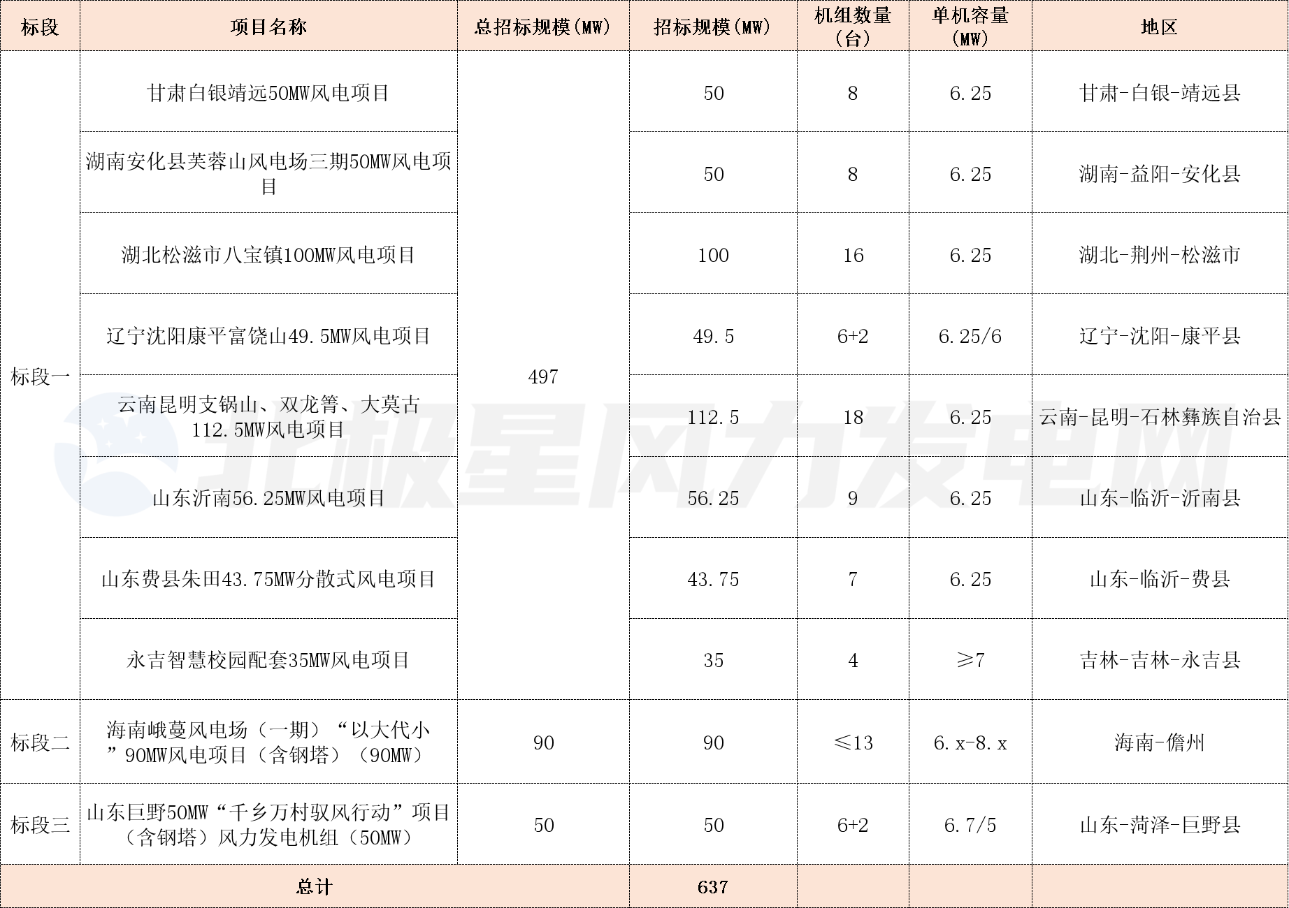 北极星风力发电网获悉,1月9日,国家能源集团发布《国家能源集团2025年第5批风力发电机组集中采购公开招标项目招标公告》。《公告》显示,本次招标分为三个标段,其中标段一共包含8个风电项目,招标总规模497MW;标段二包含1个风电项目,招标规...