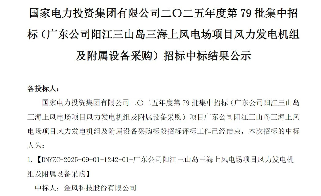 11月25日,国家电投发布广东公司阳江三山岛三海上风电场项目风力发电机组及附属设备采购、山东公司山东半岛南5号海上风电一期600MW项目风力发电机组设备(含塔筒)中标结果公示,项目招标总装机容量1083.5MW。详情如下:广东公司阳江三山岛...