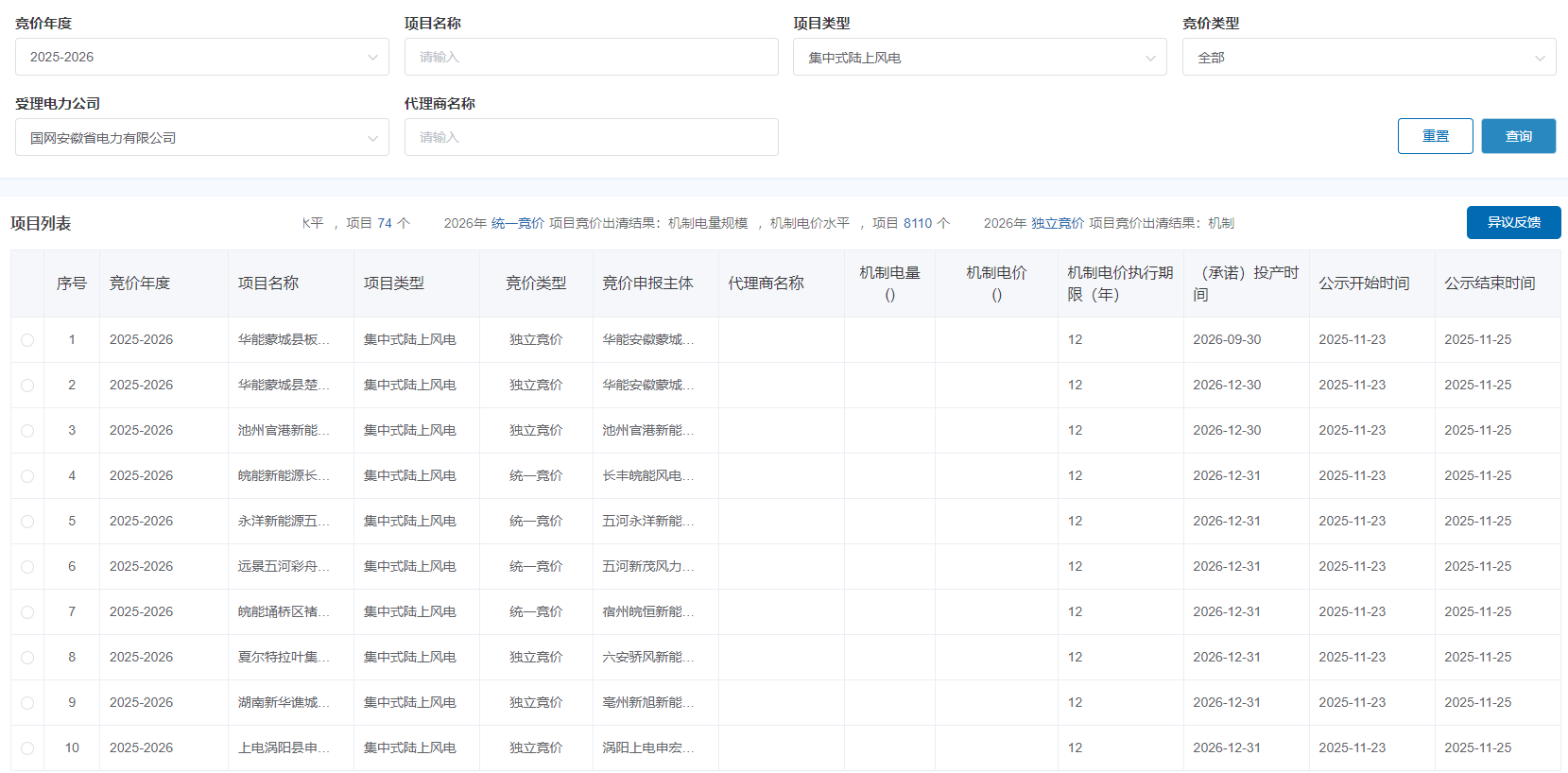 11月23日,安徽公示2025-2026年新能源增量项目机制电价竞价结果。本次独立竞价项目竞价出清结果:机制电量规模41.1295亿千瓦时,机制电价0.3837元/千瓦时,项目74个。统一竞价项目出清结果:机制电量规模17.5477亿千瓦时...