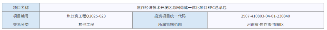 北极星储能网讯:2025年10月30日,焦作经济技术开发区源网荷储一体化项目EPC公开招标,招标人为焦作长久新能源综合利用有限公司,项目总投资约223477.66万元。建设资金为自筹资金(资金来源),项目出资比例为100%。计划总工期为90...