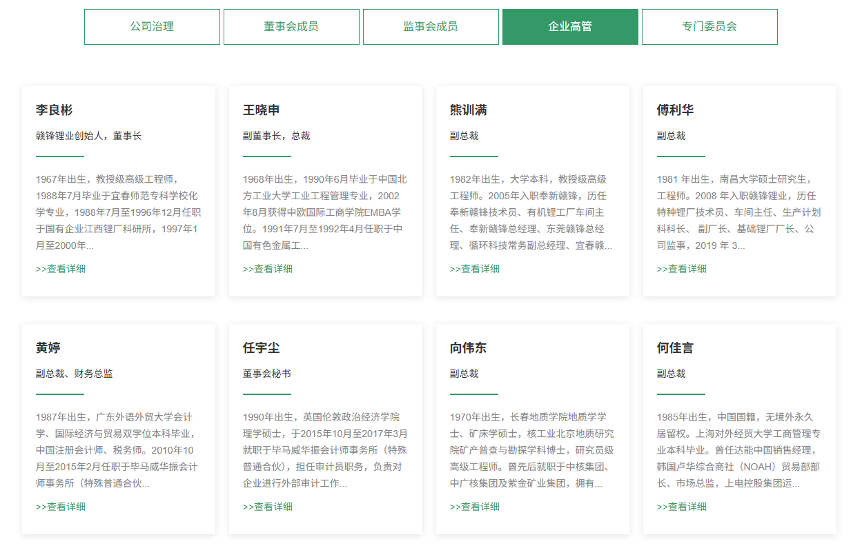 北极星储能网获悉,10月29日,江西赣锋锂业集团股份有限公司披露调整公司部分高级管理人员。赣锋锂业董事会收到公司副总裁徐建华先生、罗光华先生及王彬先生递交的书面辞职报告。为持续优化公司治理结构,深化板块专业化管理,赣锋锂业于近期对组织架构进...