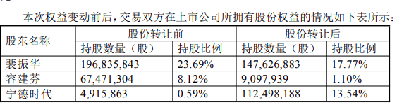 北极星储能网获悉,10月31日,天华新能发布公告称,公司实际控制人裴振华、容建芬夫妇与宁德时代签署了《股份转让协议》。根据协议,裴振华、容建芬夫妇拟通过协议转让方式,向宁德时代合计转让其持有的公司107,582,325股无限售流通股,占公司...