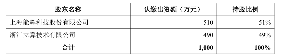 北极星储能网获悉,11月3日,能辉科技披露对外投资成立控股子公司的公告,基于看好“算力+AI”的长远发展,把握“算力+新能源”的发展机遇,推动公司战略转型,近日,上海能辉科技股份有限公司与浙江立算技术有限公司以货币方式共同出资人民币1000...