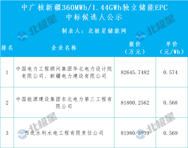 北极星储能网获悉,10月16日,中广核新能源新疆巴州若羌16万千瓦64万千瓦时、和田洛浦20万千瓦80万千瓦时独立储能项目EPC总承包工程采购中标候选人公示。第一中标候选人为中国电力工程顾问集团华北电力设计院有限公司、新疆电力建设有限公司联...