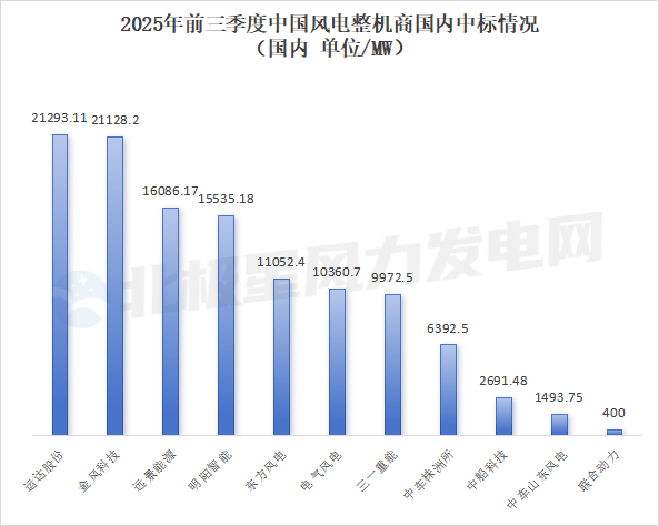 据北极星风力发电网基于公开数据及企业提供信息的不完全统计,2025年前三季度国内风电机组中标总量达116405.99MW。其中,运达股份以21293.11MW位居榜首、金风科技以21128.2MW紧随其后、远景能源以16086.17MW位列...