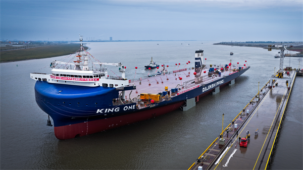 2025年10月10日,由大金重工制造的40000吨甲板运输船KINGONE号顺利吉水。KINGONE号大型甲板运输船是大金重工为海上风电、油气等海洋工程类装备运输研发设计,型长240米、型宽51米、型深13米,甲板面积达1.2万平方米,最...