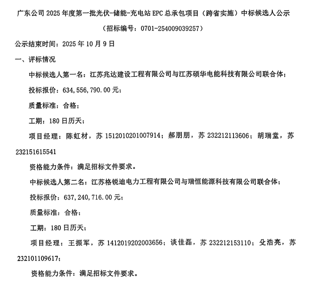 北极星储能网讯:10月5日,京能领金发起的大规模光储充EPC开标,其中第一中标候选人为江苏兆达建设工程有限公司、江苏硕华电能科技有限公司的联合体,投标报价63455.679万元。根据招标公告,此次招标为分布式光储充项目,建设地点位于广东省广...