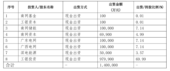 北极星储能网获悉,9月30日,南网储能披露参与投资设立南网工融基金暨关联交易,拟与南网私募基金管理有限公司(以下简称“南网基金”)、工银资本管理有限公司(以下简称“工银资本”)、南方电网资本控股有限公司(以下简称“南网资本”)、广东电网有限...