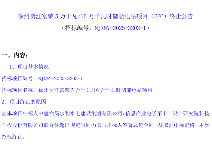 9月28日,徐州贾汪富荣新能源科技有限公司发布徐州贾汪富荣5万千瓦/10万千瓦时储能电站项目(EPC)招标公告(二次)。在此前的一次招标中,本项目中标人中建六局水利水电建设集团有限公司、信息产业电子第十一设计研究院科技工程股份有限公司联合体...
