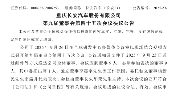 北极星储能网获悉,9月27日,重庆长安汽车股份有限公司发布第九届董事会决议公告,提到,会议审议通过《关于设立海外子公司的议案》表决结果为全票通过。审议通过了《关于长安汽车投资(深圳)有限公司设立飞行汽车合资公司的议案》,表决结果为全票通过。...