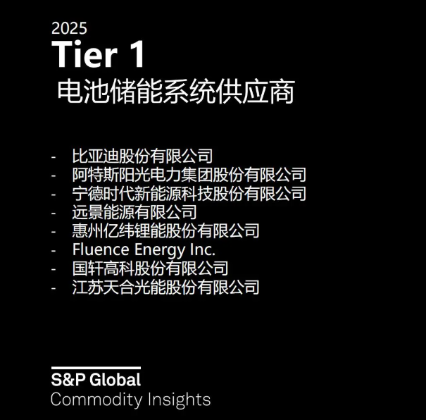 北极星储能网讯:近日,标普全球大宗商品正式发布“2025年Tier1清洁能源技术企业榜单”,揭晓储能等4大领域的关键供应商。2025年Tier1电池储能系统供应商共有12家企业上榜,其中有8家中企,分别为比亚迪、阿特斯、宁德时代、远景能源、...