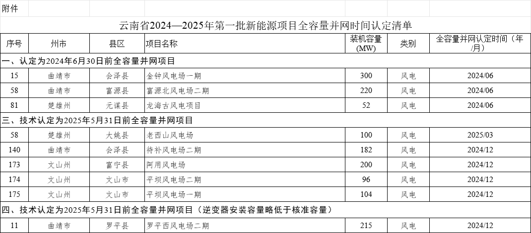 9月16日,云南省能源局发布《关于印发2024—2025年第一批新能源项目全容量并网时间认定清单的通知》。点击阅读原文查看,或关注风能专委会CWEA公众号,后台回复“2025报告”,进入9月份目录,下载或转存相关报告和资料。通知共披露301...