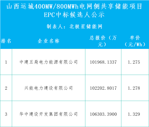 9月12日,神州西储安阳县200MW/400MWh储能电站项目EPC施工总承包中标候选人。第一中标候选人:联合体牵头人:中国建筑第二工程局有限公司地址:北京市通州区梨园镇北杨洼251号联合体成员:河南厚友工程设计咨询有限公司地址:河南省郑州市郑东新区商都路5号C7号楼1-3层投标报价:1.03元/Wh(储能容量按400MWh计算报价)项目负责人(施工项目负责人):李义强证书名称及编号:一级建造师注...