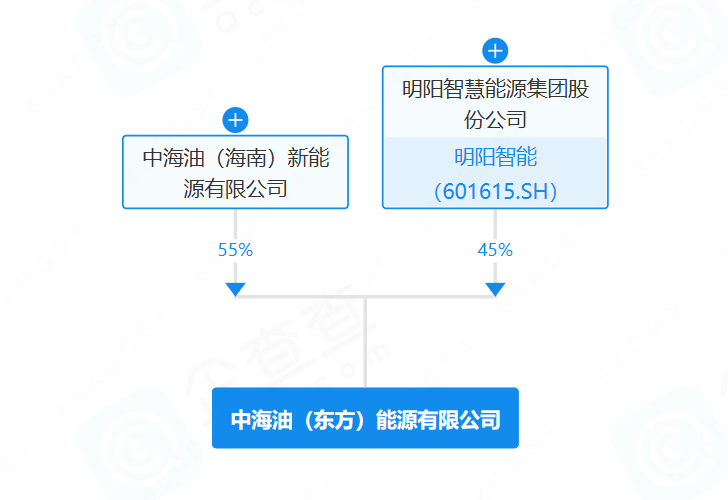 企查查APP信息显示,近日,中海油(东方)能源有限公司成立,注册资本为10亿元。新公司由中海油(海南)新能源有限公司(55.00%)、明阳智慧能源集团股份公司(45.00%)共同持股。从经营范围来看,新公司业务覆盖能源生产与技术服务多个领域...