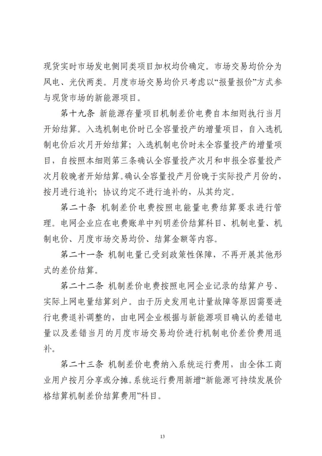 总体方案明确,新能源项目(风电、光伏发电,下同)上网电量全部进入电力市场。其中统调新能源项目按照相关市场规则,以“报量报价”方式参与现货市场,加快实现自愿参与日前市场。其他新能源项目作为价格接受者参与现货市场,按照现货实时市场同类项目(分风电、光伏两类)月度平均价格结算;具备条件的可以“报量报价”方式参与现货市场。