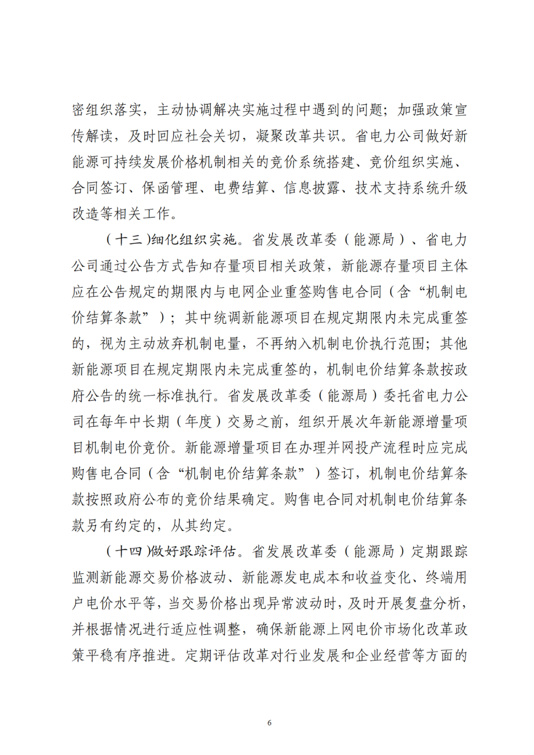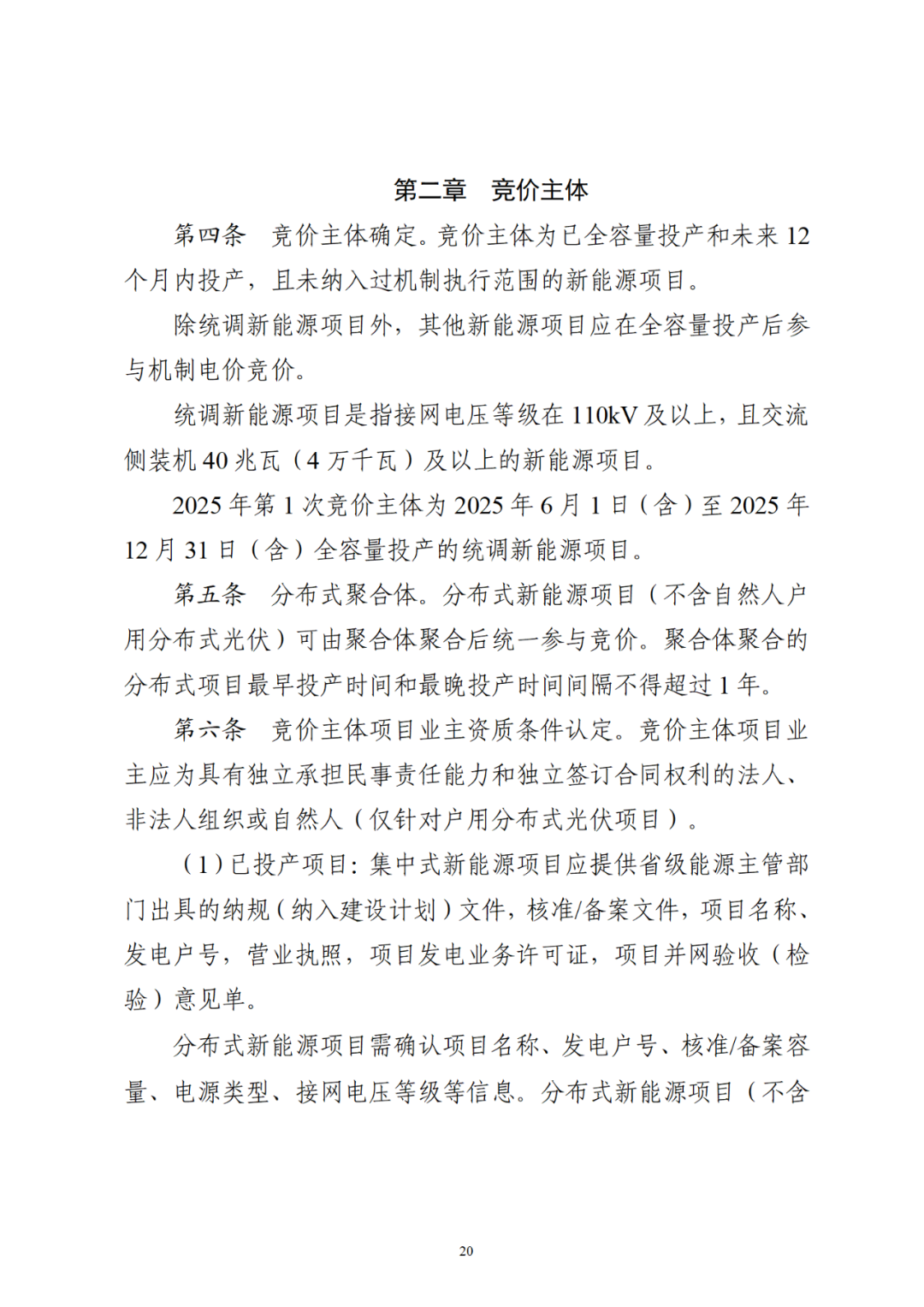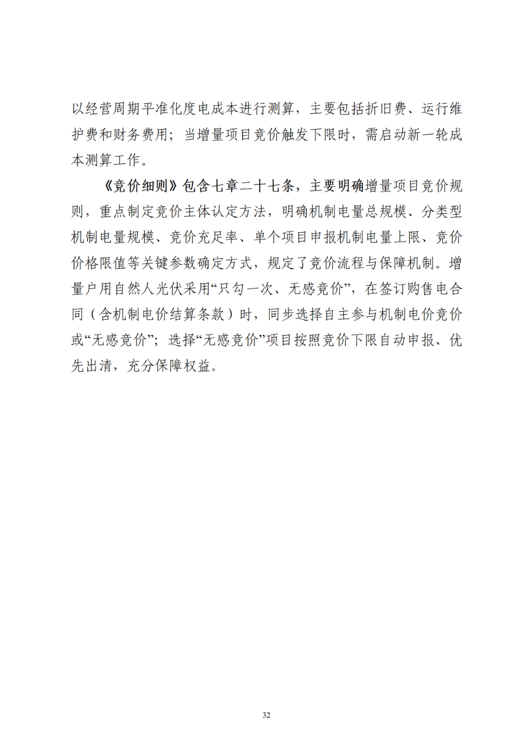 1.机制电价、机制电量,通过全省集中性竞价确定,实行分类组织竞价。分类组织竞价时,同一年度竞价采用相同的竞价上限、下限。参与深远海(国管海域)风电竞价主体较为集中的,不单独组织竞价,可由“根据项目成本调查结果,与其他类型竞价结果联动”等市场化方式形成机制电价。除统调新能源项目外,其他新能源项目应在全容量投产后参与竞价。