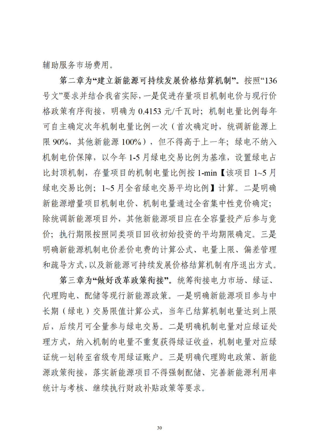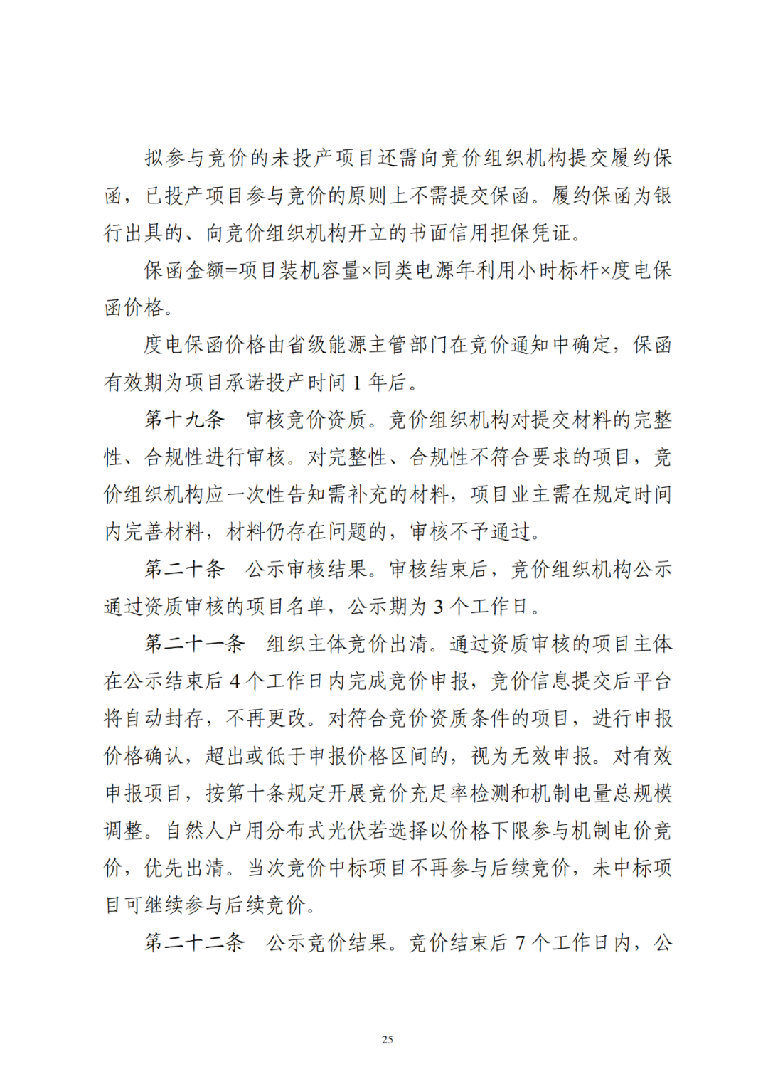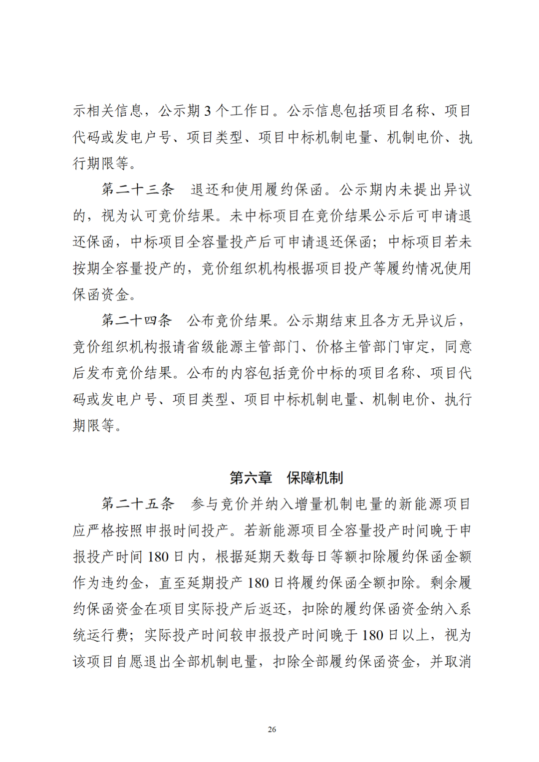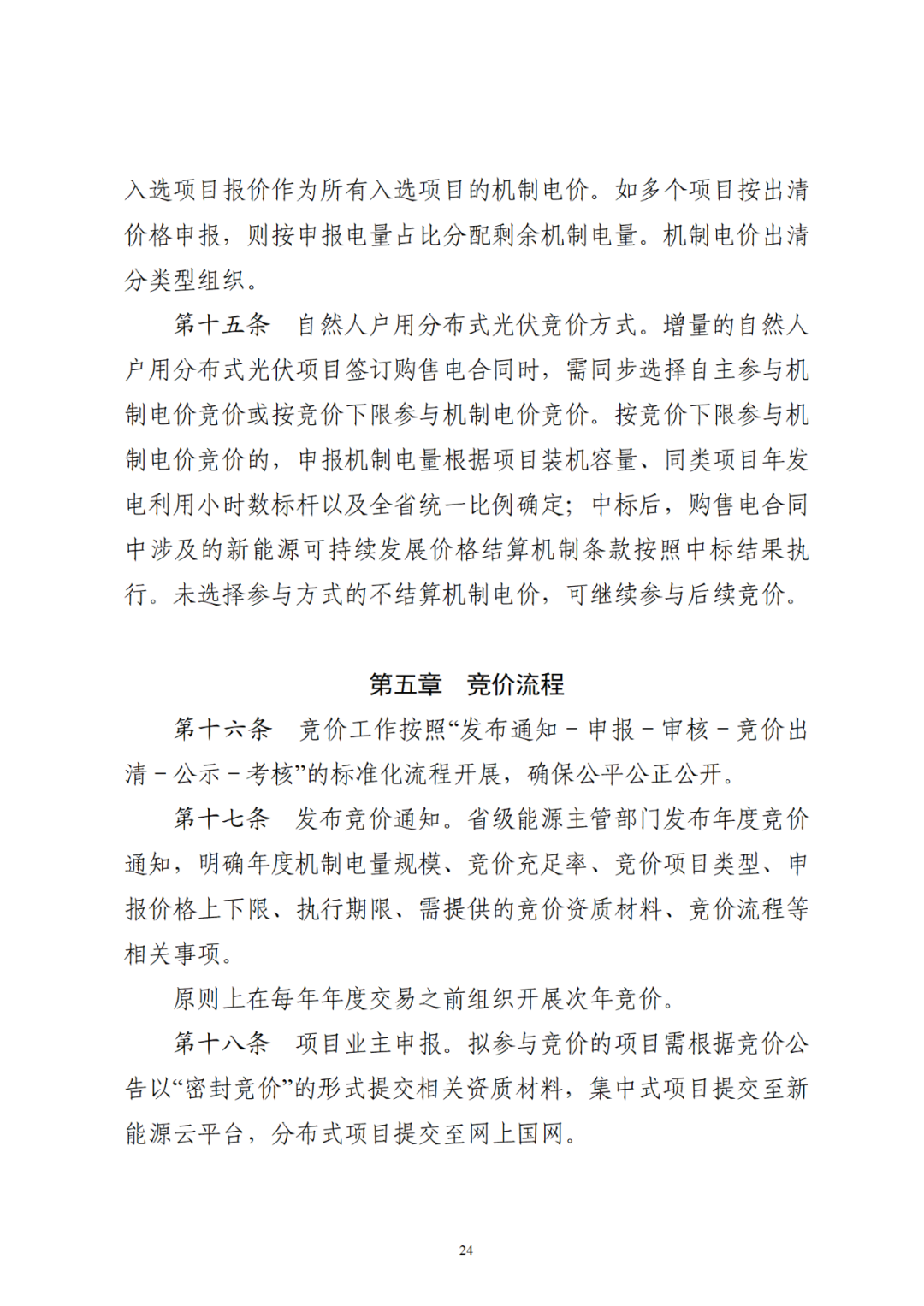 1.机制电价、机制电量,通过全省集中性竞价确定,实行分类组织竞价。分类组织竞价时,同一年度竞价采用相同的竞价上限、下限。参与深远海(国管海域)风电竞价主体较为集中的,不单独组织竞价,可由“根据项目成本调查结果,与其他类型竞价结果联动”等市场化方式形成机制电价。除统调新能源项目外,其他新能源项目应在全容量投产后参与竞价。