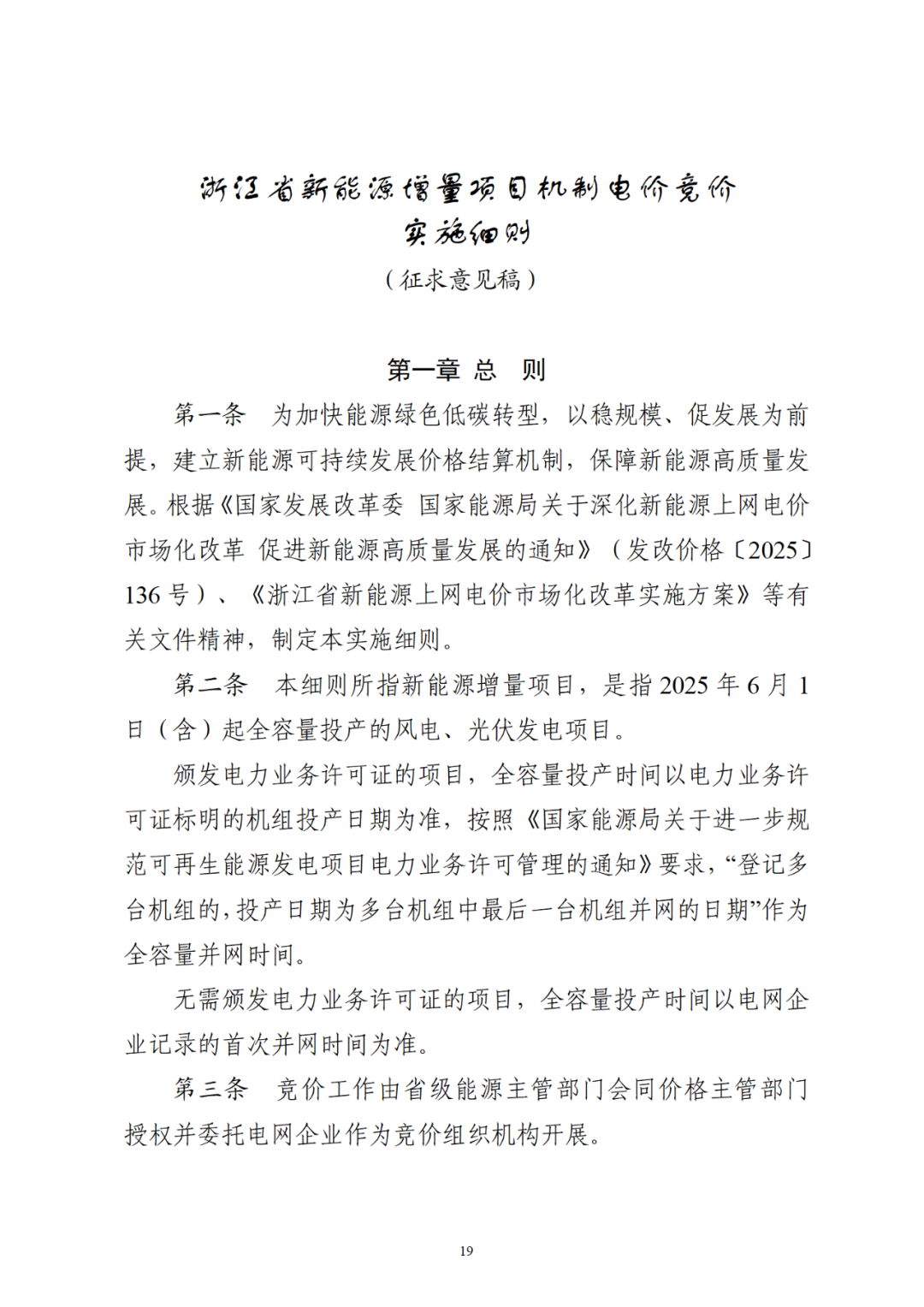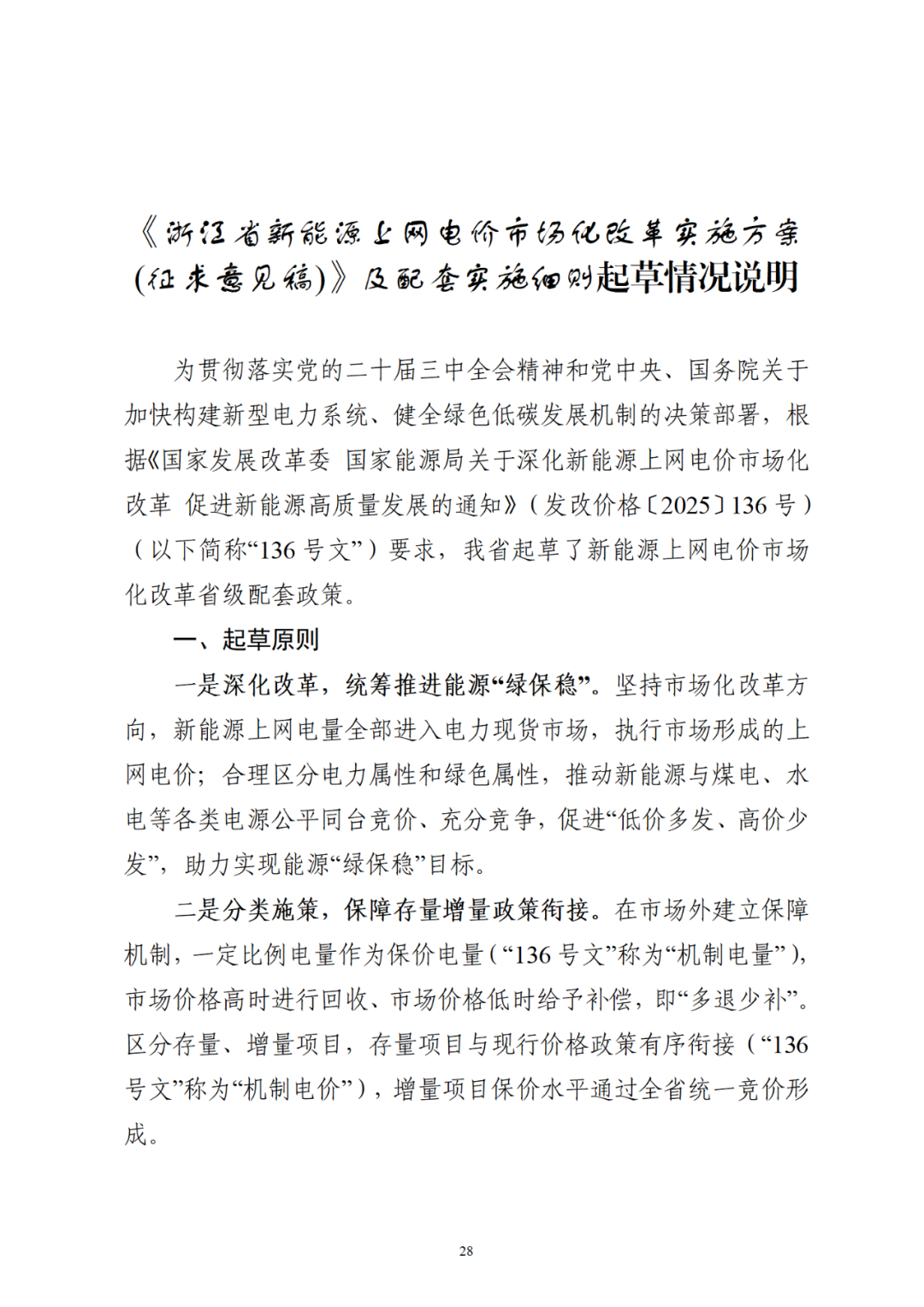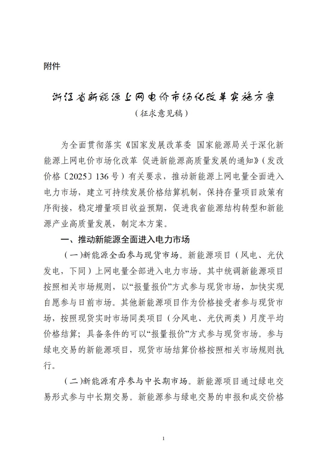 9月3日,浙江省发改委公开征求《浙江省新能源上网电价市场化改革实施方案(征求意见稿)》及配套实施细则意见。