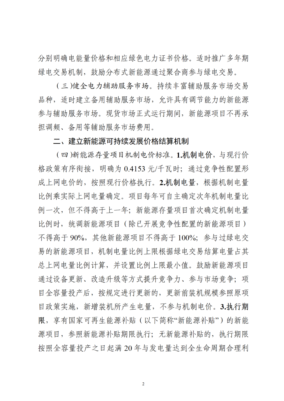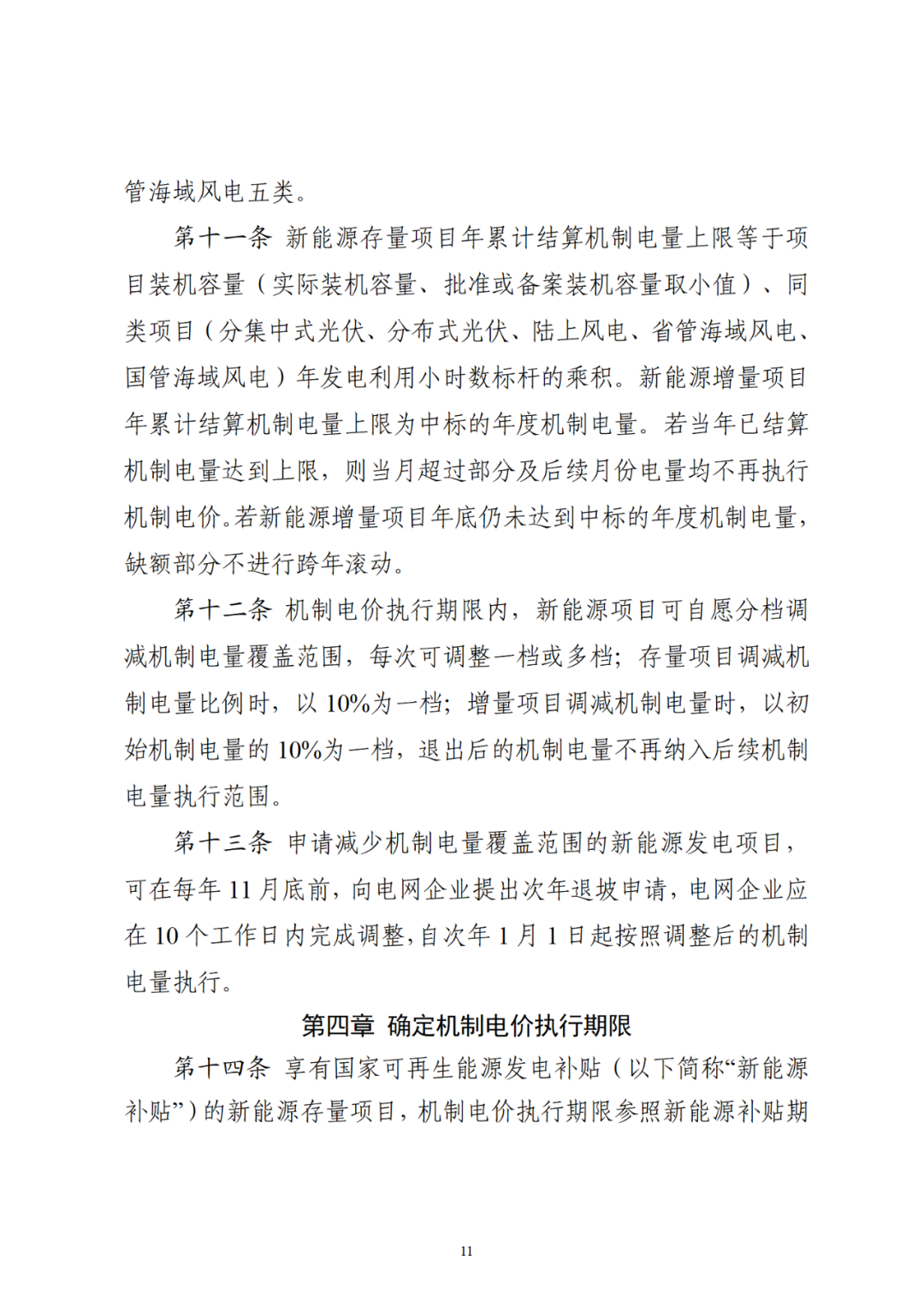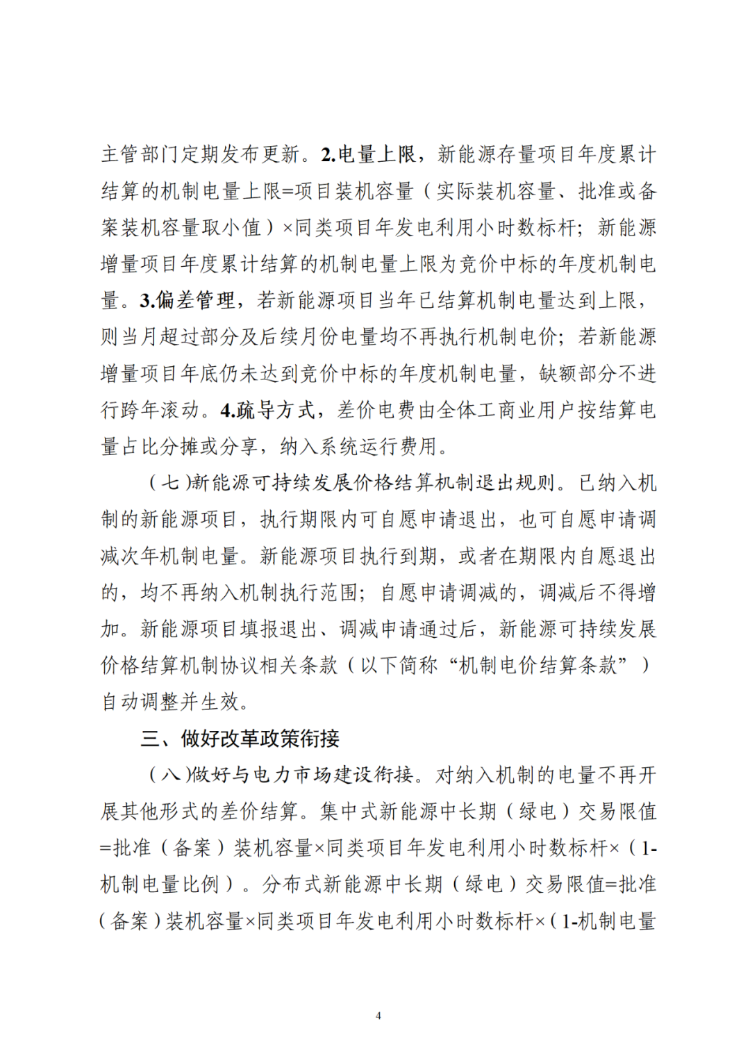 3.执行期限,享有国家可再生能源补贴(以下简称“新能源补贴”)的新能源项目,参照新能源补贴期限执行;无新能源补贴的,执行期限按照全容量投产之日起满20年与发电量达到全生命周期合理利用小时数对应电量折算期限较早者确定,执行期限届满后,次月不再执行机制电价。