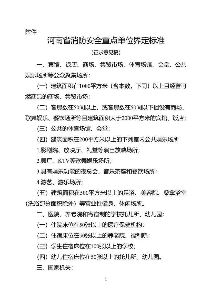 附件:河南省消防安全重点单位界定标准(征求意见稿)