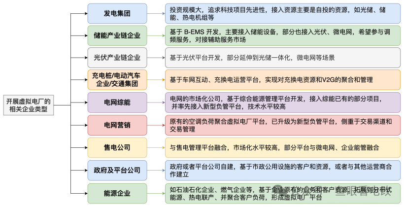 大致梳理了一下虚拟电厂技术平台的源流,可以说是“八仙过海,各显神通”,如下图所示: