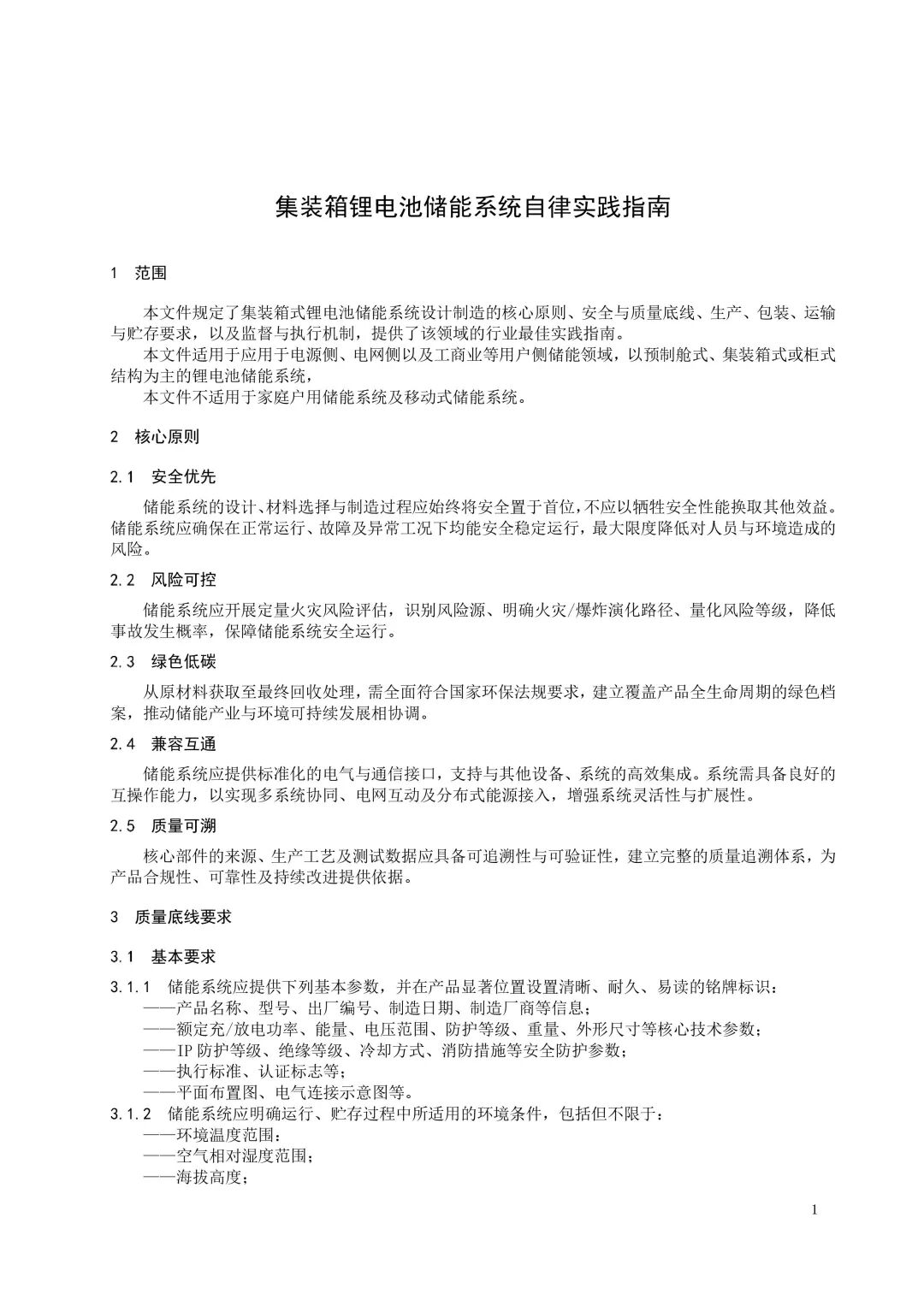 北极星储能网讯:2025年10月16日,在第五届储能安全研讨会上,中关村储能产业技术联盟联合联盟常务理事会成员等25家行业龙头企业共同发布《集装箱锂电池储能系统自律实践指南》,是行业首份针对集装箱锂电池储能系统的规范性指导文件,也是行业首次将共识转化为系统性实践规范。