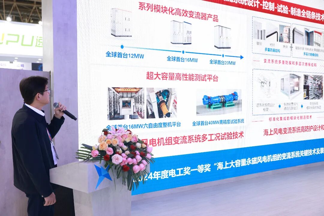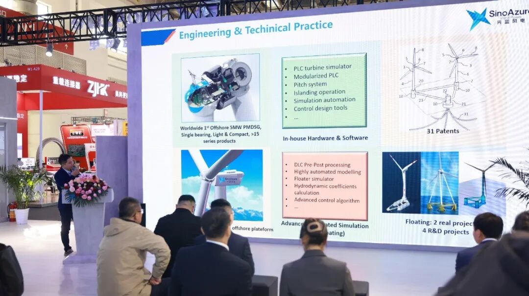 作为我国风电领域唯一获准建设的“海上风力发电装备与风能高效利用全国重点实验室”牵头单位,兴蓝风电在展会上重点展示了实验室在三大科技攻关项目上的成果:大功率海上风电机组基础理论与关键技术、智能化风电场集群关键技术、风能高效利用关键技术,覆盖机组、风电场及新业态多个层面。