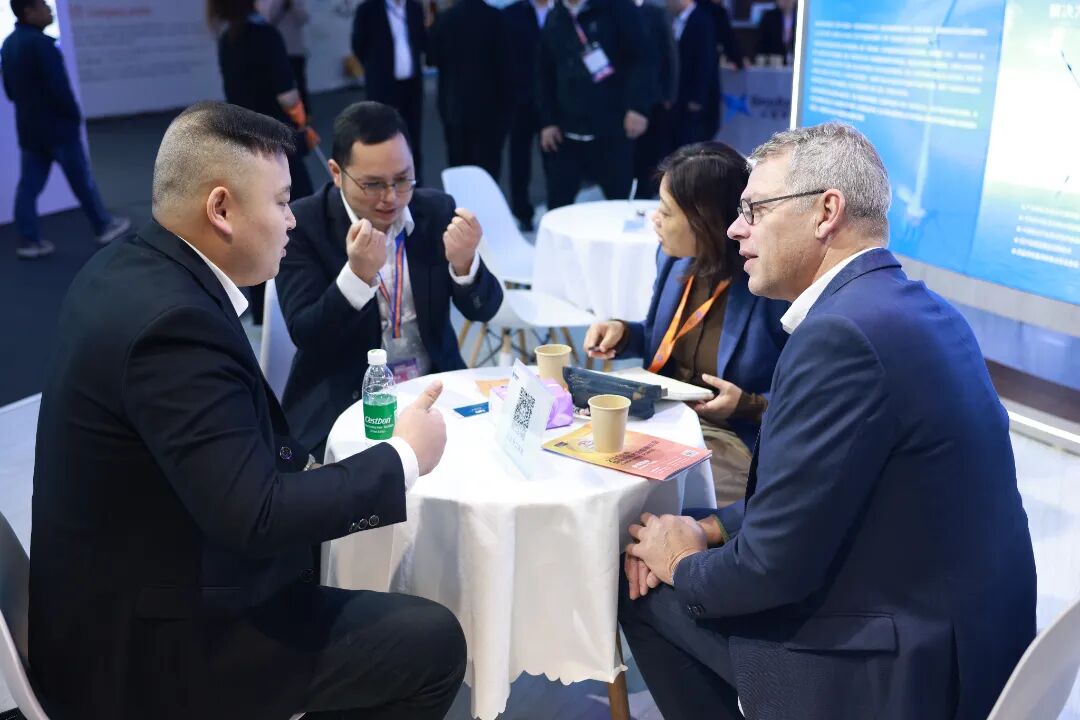 兴蓝风电的系统性创新在展会现场引发了持续关注,多家权威媒体进行现场采访与报道。同时,得益于法国大西洋漂浮式项目的成功实践,兴蓝风电在深远海领域的技术实力获国际认可。展会期间,众多国际客户对“一基双机”浮式方案和智慧运维体系表现出浓厚兴趣,展台前商务洽谈络绎不绝。