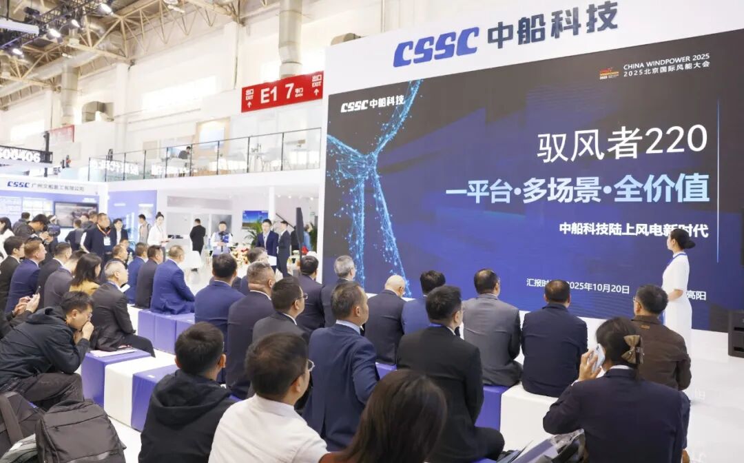 10月20日,全球风能盛会——北京国际风能大会暨展览会在中国国际展览中心(顺义馆)拉开帷幕。中船科技在“中船所向 深蓝图强 科技所往 智慧领航”产品发布会上,剑指陆上中低风速市场需求和深远海风电发展趋势,重磅发布H220平台陆上风电机组与H305-20MW海上风电机组两大新品,以技术突破拓展了中国风电开发的空间与边界,推动风电产业向 “中低风速高效开发” 与 “深远海规模化平价” 双轨进阶。