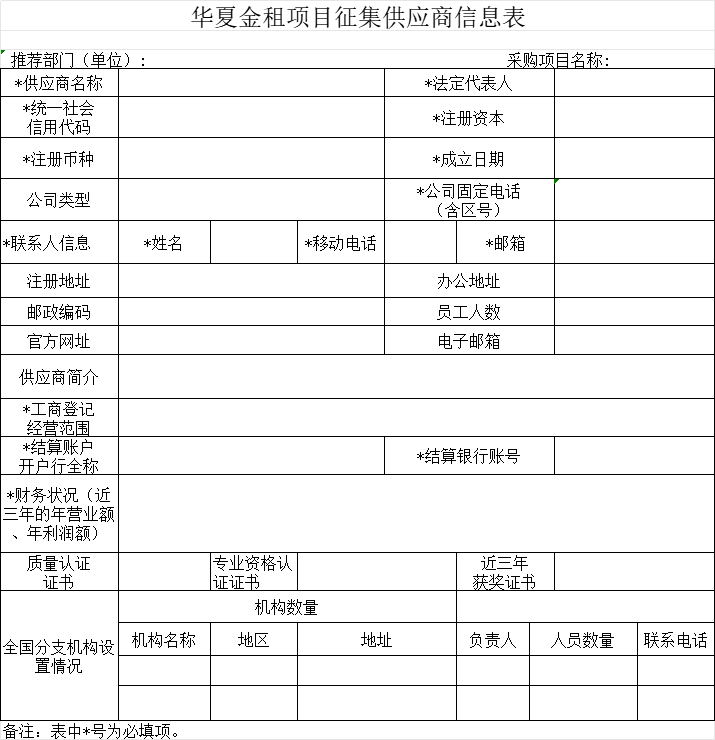7. 华夏金租项目征集供应商信息表(详见附件2)。