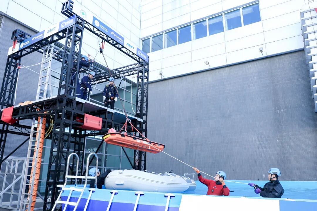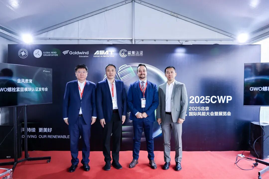 专业培训是预防安全风险的“第一道关”。金风科技在展会现场搭建了海上作业模拟场景,由培训专家为观众呈现全球风能组织(GWO)高处作业、海上求生和风机高级救援实战演练。同期,金风完成“GWO螺栓紧固模块培训课程”发布,并获得GWO认证;荣获GWO年度领先示范机构、年度卓越讲师奖、年度行业推动奖。