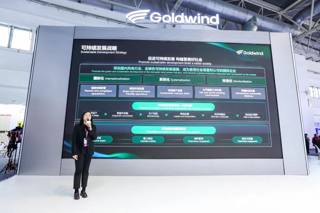 金风科技高度关注ESG管理水平的持续改善,在展会期间,与行业伙伴积极交流“诚信合规经营、绿色环保运营、建设可持续产业链、公平健康工作环境以及建立和谐社区关系”等方面的体系化管理经验和实践路径。
