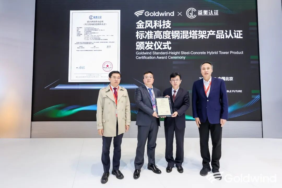 金风科技获得由鉴衡认证中心颁发的“标准高度钢混塔架产品认证”