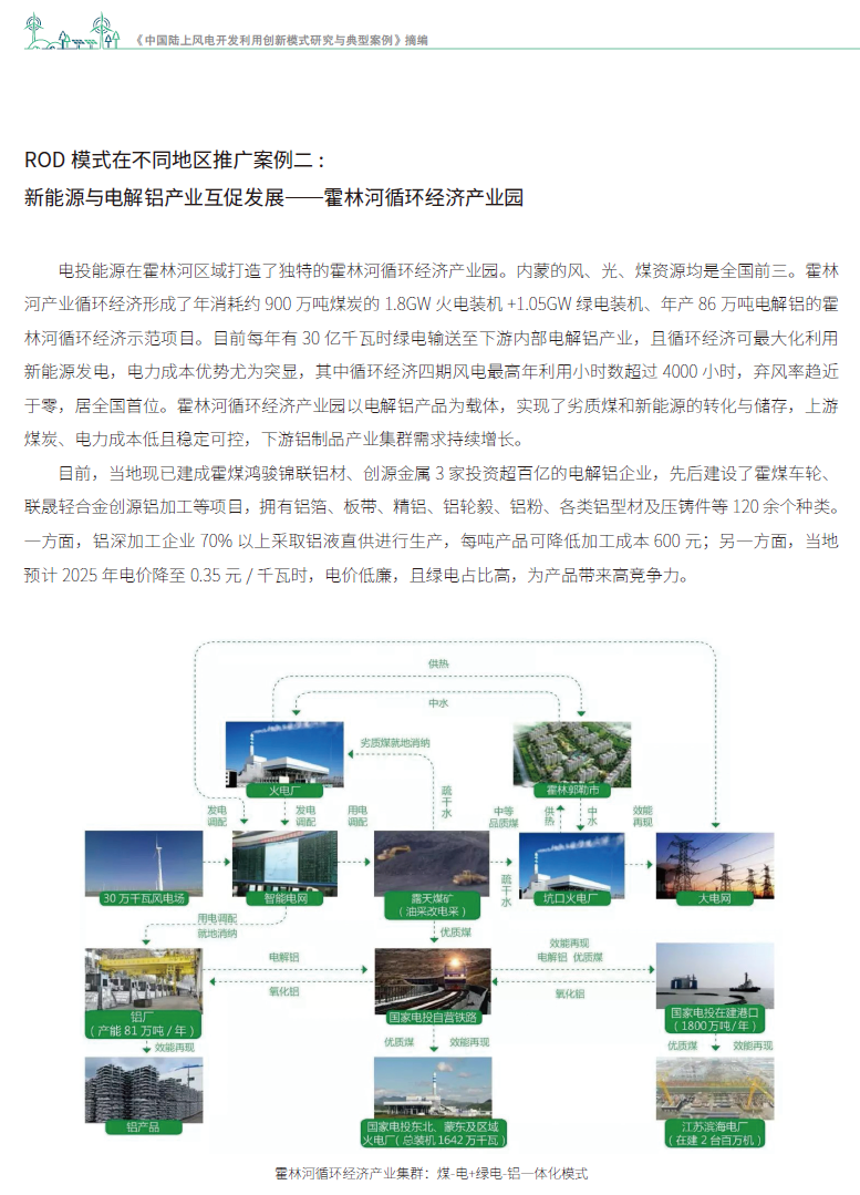 在内蒙古霍林河,循环经济产业园将火电、绿电与电解铝产业深度融合,形成了“煤电+绿电-铝”一体化模式。园区绿电弃风率趋近于零,低廉的绿色电力为铝产品带来了极高的市场竞争力。